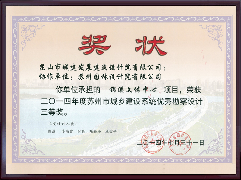 2015年度昆山市优秀勘察设计...