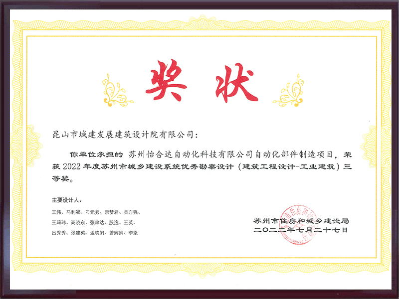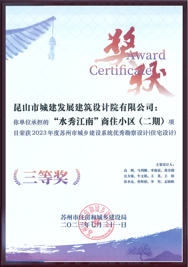 2018年苏州优秀勘察设计三等...